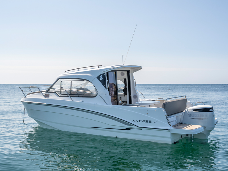 A cool boat with a sleek sporty design and an enclosed saloon, the Antares 8 is especially geared for a day of fishing.