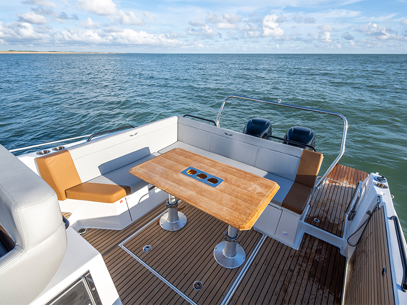 The Flyer 9 is a nice sporty day boat with big outdoor spaces, great for towing toys and wake boarding. It’s also easy to handle, fast, agile and sporty.