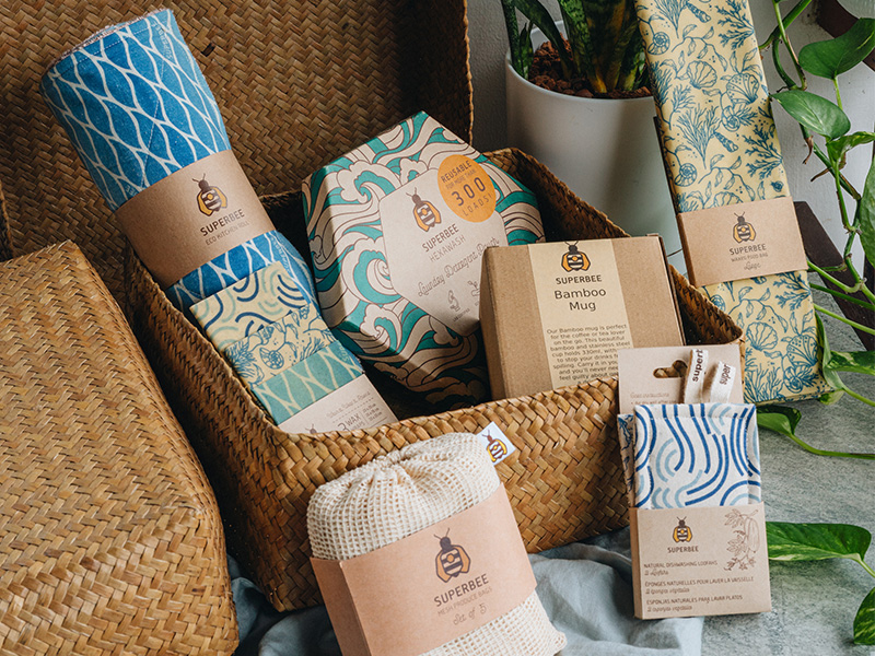 SuperBee brings everyday change through simple, reusable products made by women artisans in Northern Thailand. The Ocean Action Bundle offers practical tools like beeswax wraps, eco kitchen rolls and bamboo essentials that help replace single-use plastics. Each item is made from natural materials and follows a circular economy model, turning waste into something useful while staying chemical-free.