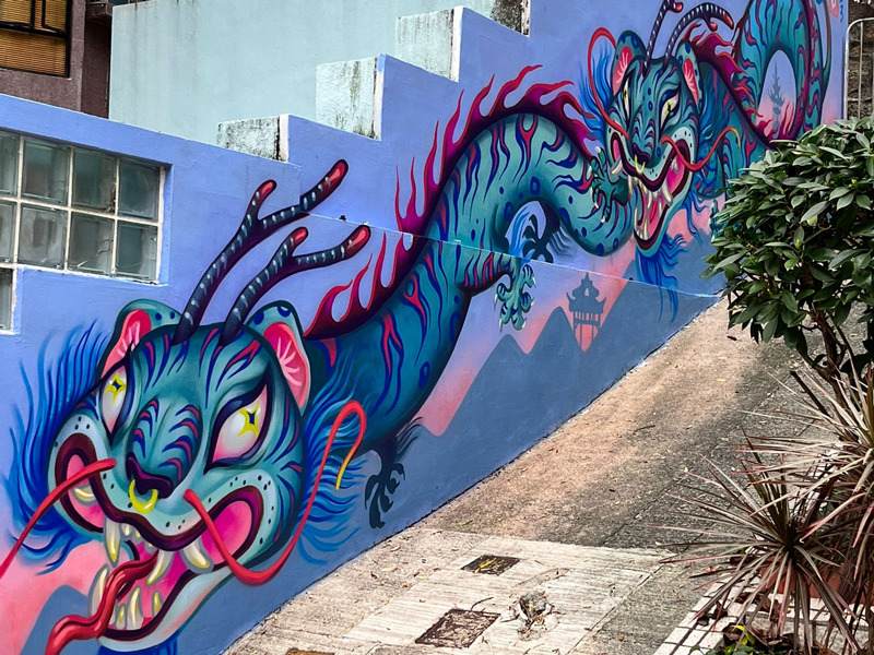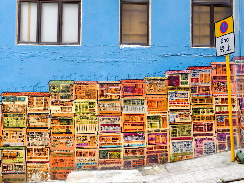 Another highlight of walking Hollywood Road is eyeballing some stunning street murals by local and international artists. The best known of these is on the corner of Graham Street – it depicts dense apartment living in Kowloon.