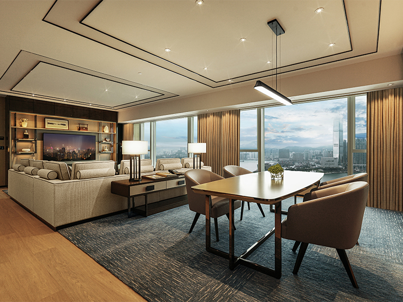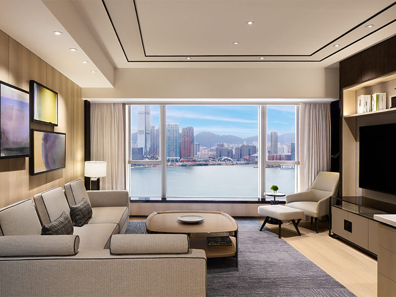 The Four Seasons truly means it when it says “superior”. There’s only one of these suites per floor, nicely tucked away in a corner at the end of the hallway. The panoramic floor-to-ceiling windows allow natural light to come flooding in. Approaching the windows, the 180-degree Victoria Harbour views are astounding, with the Tsing Ma Bridge in all its glory to the west, and Tsim Sha Tsui to the east.