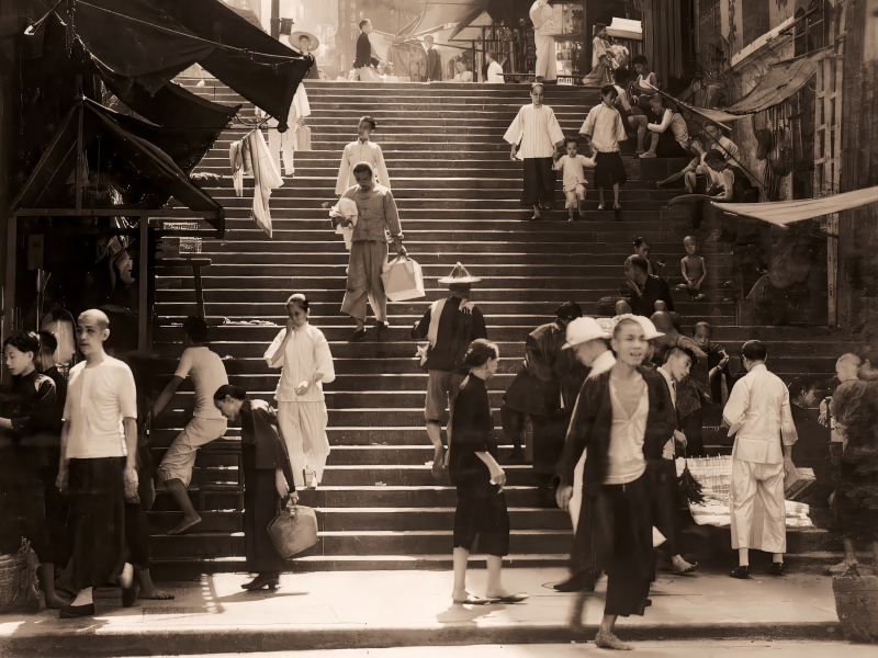 The meticulously curated collection contains over one hundred rare historical photographs that feature Victorian-style arcades, bustling street markets and tranquil waterfronts, reflecting the rhythm of old Hong Kong life.