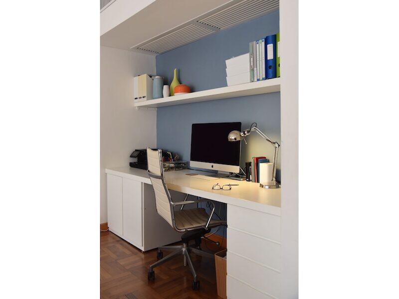 I’m also often required to carve a work space out of another room; in these scenarios, the space needs defining so it doesn’t spill into the main room, but it also needs to blend in aesthetically – and clutter-free storage is non-negotiable!