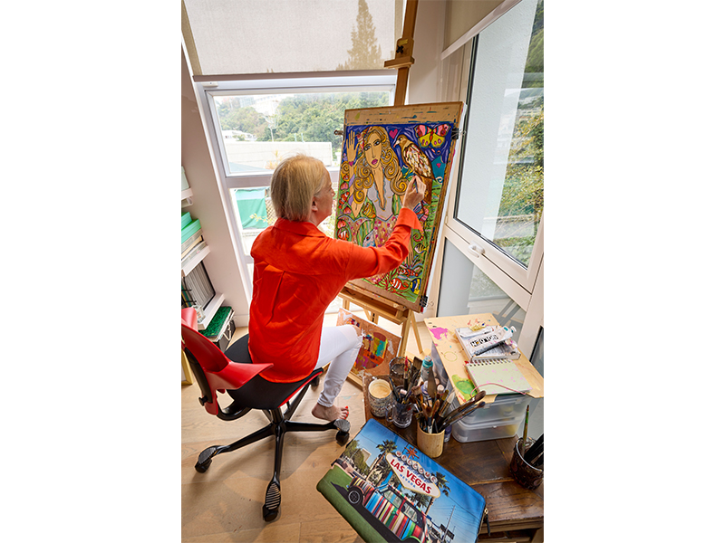 Yes, I have a beautiful studio on the top floor, which looks out over the green vegetation at the back of the house. It’s such a vibrant yet calm space. My dogs and cats love to come here, as it’s such a loving place to hang out.