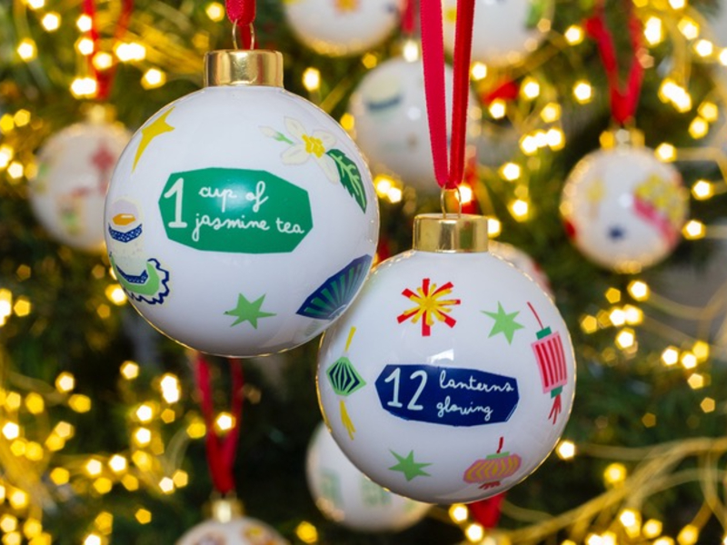 This amazing Christmas hamper includes all of the following: a “12 Days of Hong Kong” Christmas bauble, a boxed gift set of decorations featuring some of HK’s favourite foods, two chinoiserie-inspired festive tea towels, a Hong Kong skyline pearlescent bauble, a Deluxe Twin Pack of Chinoiserie-designed playing cards and four Christmas luxe postcards!