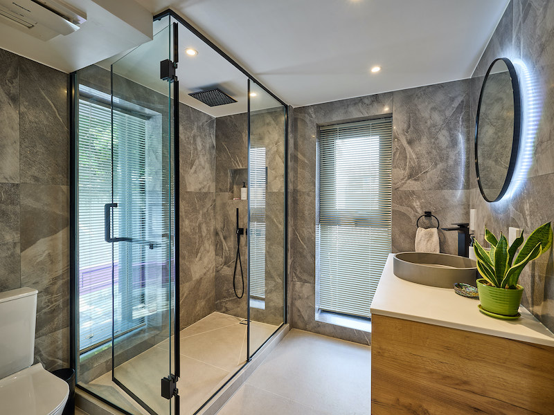 The renovation included a bespoke kitchen, professional cinema room, luxury bathrooms, our signature “drop windows” and a complete external design change with new timber cladding to create an architectural statement. The latter was one of the more challenging aspects of the project, as we had to weld the frame first, then install cladding materials one by one, cut to fit at each corner by hand. This involved a lot of manpower for the whole process.
