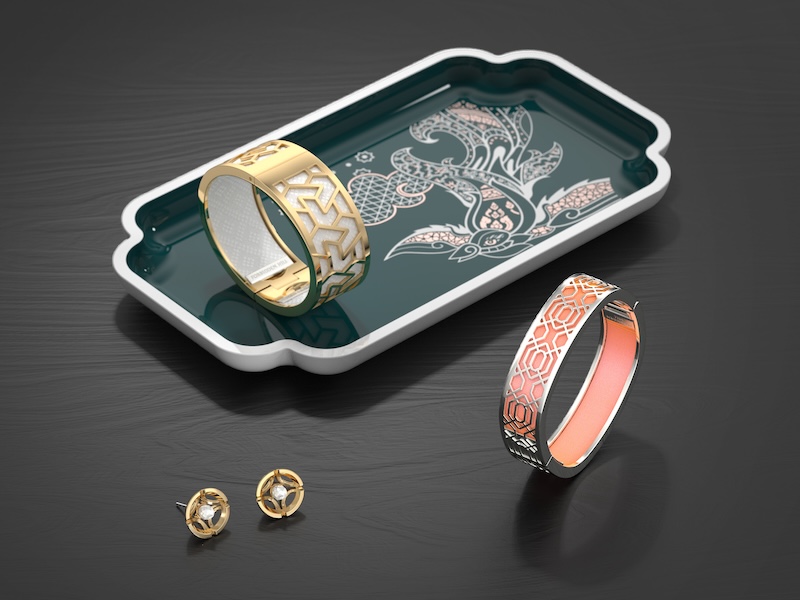 It features gold earrings, bracelets, necklace designs and customised or bespoke jewellery pieces.