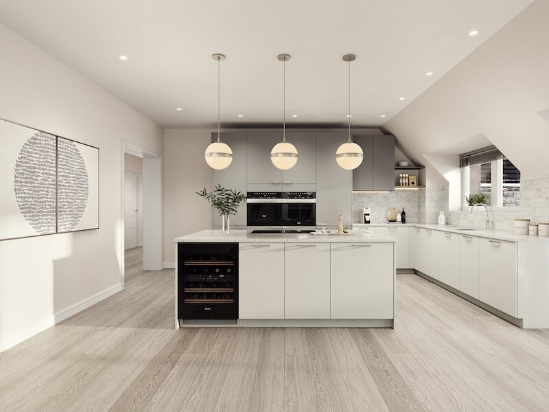 Each apartment at No. 9 is carefully crafted, from layouts to specifications that will suit all tastes and lifestyles. Considerable thought has gone into the fixtures and fittings, which are finished to an incredibly high standard. The kitchens, for example, are manufactured and fitted by Kitchens International, with bespoke Leicht German furniture. And the bathrooms feature Atlas Concorde porcelain tiles on the floors and walls. There’s also high-quality Villeroy & Boch sanitary ware and Hans Grohe taps and showers.