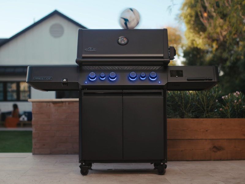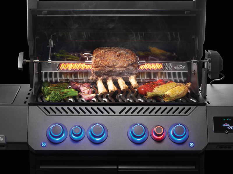 Barbecue enthusiasts will love the Napoleon Phantom Prestige 500, a stunning blend of style and advanced technology. With its sleek matte black finish and integrated Wi-Fi and Bluetooth connectivity, this grill not only looks great, but it also allows you to monitor and control your cooking from your smartphone. Key features include durable stainless steel cooking grids, a larger rotisserie burner, an infrared sear station and integrated LCD display, LED Control Knobs with SafetyGlow, a stow-away warming rack and rugged caster wheels for easy mobility. The reliable battery-free Jetfire ignition system and lifetime warranty provide peace of mind.