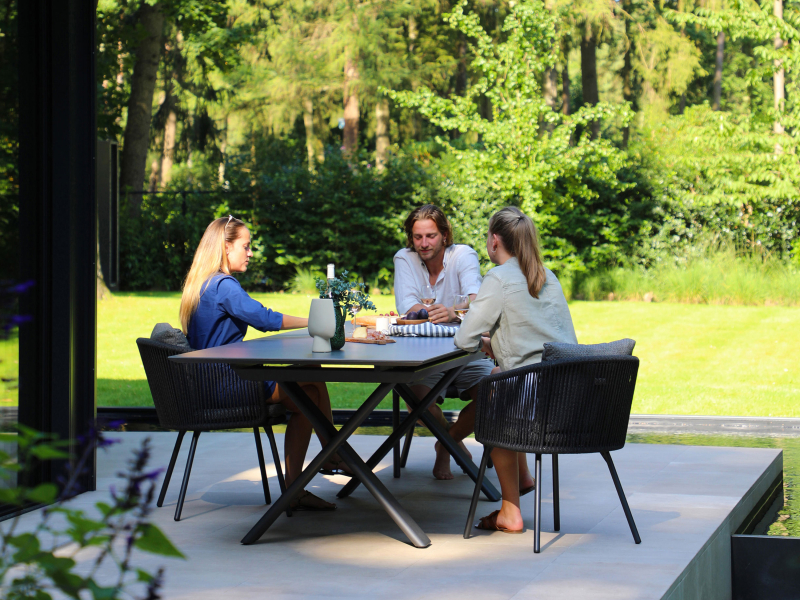 These two exquisite pieces from Everything Under The Sun’s exclusive SunWeave collection work together to create a harmonious outdoor dining experience. The X-Tend table has an innovative extension mechanism, effortlessly extending from 180cm to 240cm to accommodate additional guests. At the same time, it showcases a sleek aluminium frame and a durable ceramic top in elegant sand or grey marble. Pair it with the graceful curves of the Haven Alu Dining Chair, crafted from resilient aluminium to ensure this outdoor furniture is durable. Together, these pieces blend functionality with sophisticated design, turning every meal into a stylish occasion.