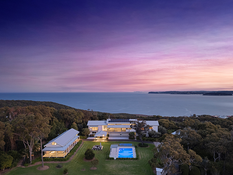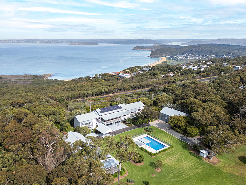 Panamuna Pavilion in Killcare Heights is a rare Sydney real estate gem. It’s a private wellness retreat located within the Bouddi National Park. The extraordinary estate at 179 The Scenic Road is framed by towering gum trees and offers panoramic ocean views stretching from Manly to the Hawkesbury River.