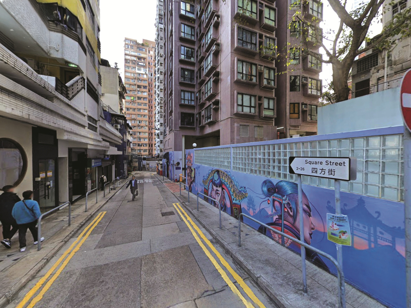 Square Street, in the Tai Ping Shan area off Hollywood Road, Sheung Wan. The Chinese name is Sei Fong Gai.