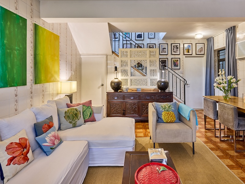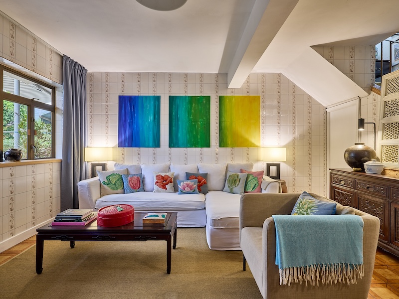 All the original characteristics of the house have been kept in place and restored. The result is a unique blend of East meets West. We brought some of our furniture with us from Europe. It has introduced an extra dimension to the house. Textiles are very important to me. The cushions I have created for The Flanders Tapestry Collection take centre stage and they add a colourful and homely feel.