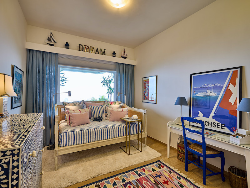 Others contributed to the final look, too. “The team at OMOS Home were able to make the daybed in another guestroom from a photo I sent them of a bed I saw in the US, including all the cane work. And Coltex made the two rugs in the living room from a photo of an antique rug I found online. The craftmanship available here in Hong Kong is really incredible.”
