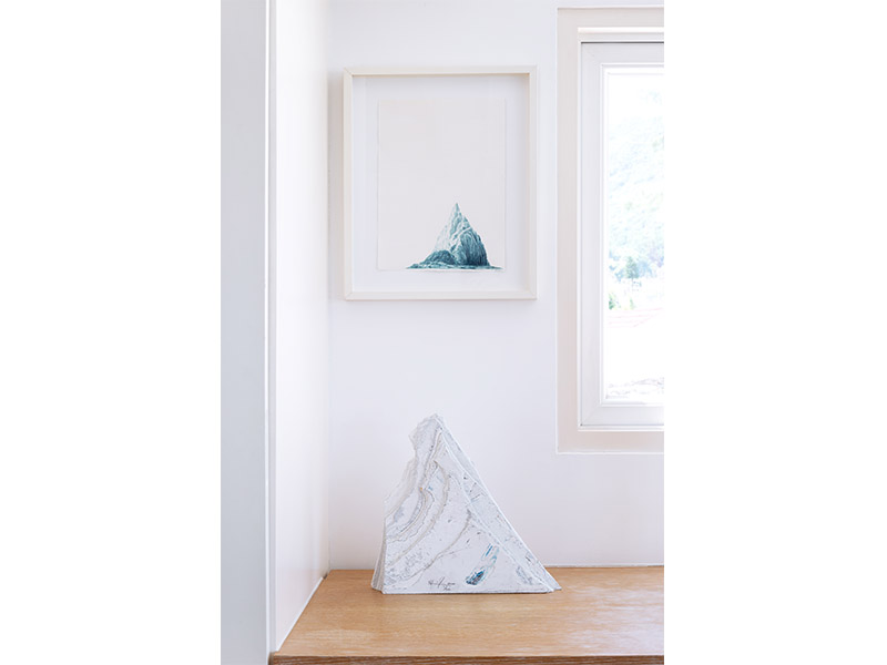 The large blue piece (opposite page) is by Tanya Ling who is London based and used to be a fashion illustrator. I love the depth of colour and the way it connects to the water outside. The photograph (first page) is by Dutch artist Berndnaut Smilde; it’s called “Nimbus Power Station” – he creates these amazing clouds in all sorts of spaces. I chose this work as it was done while he was an artist in residence in Perth (where I’m from), so I really like that connection to Western Australia. I also recently purchased a small light box by Shanghainese artist Yang Yongliang; his work is intricate and beautiful.